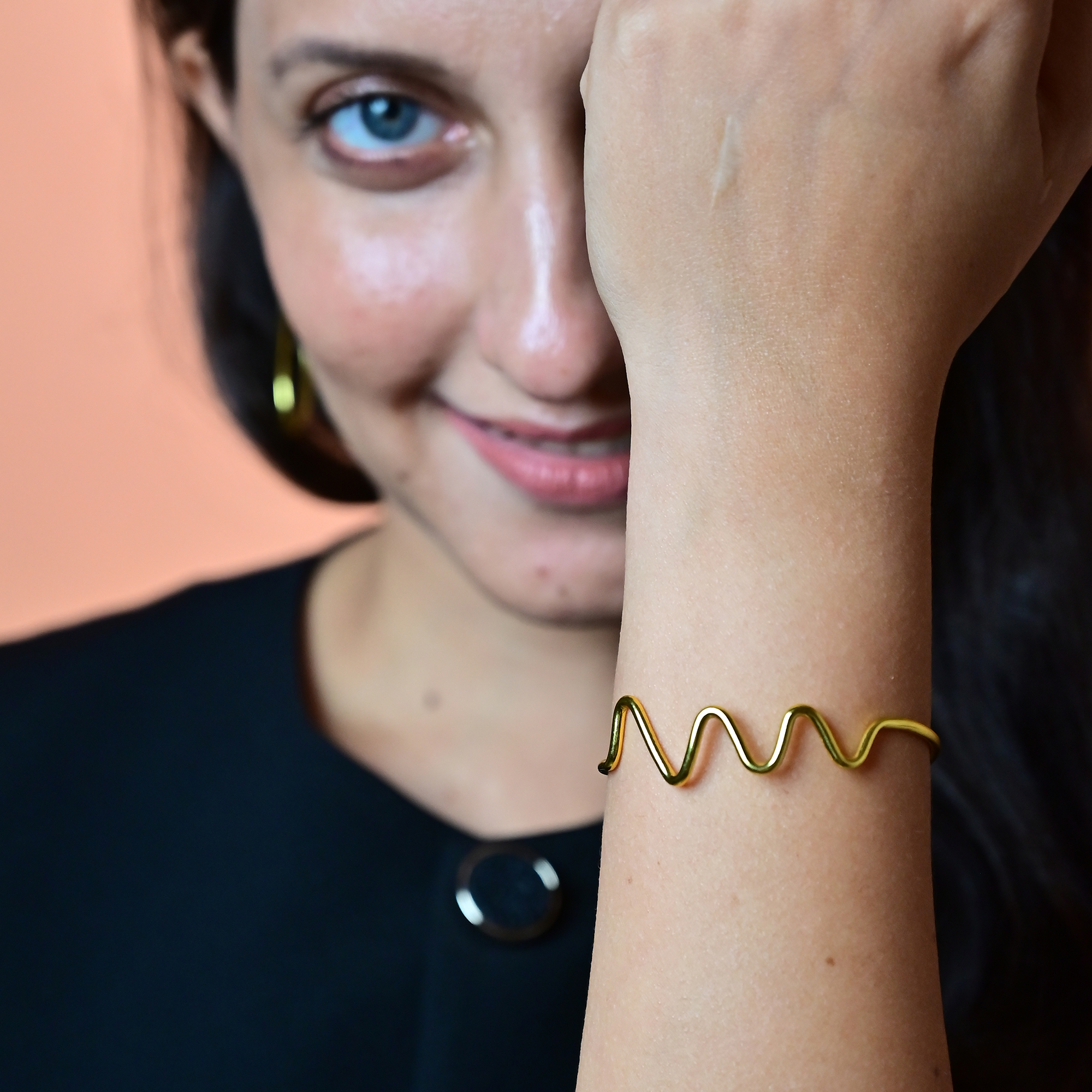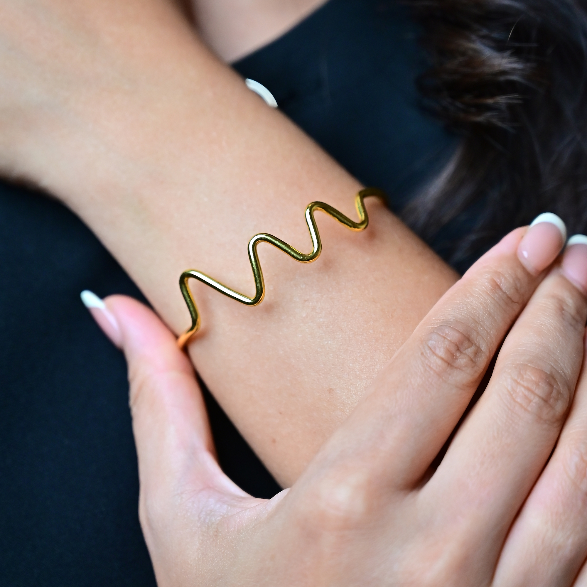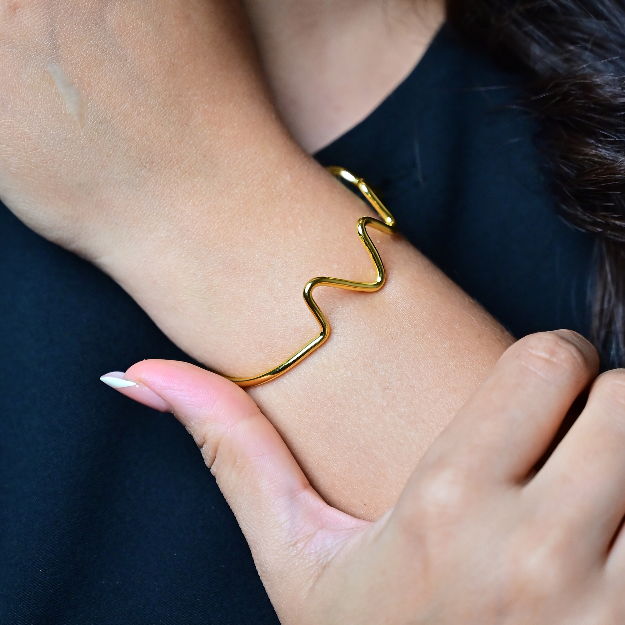 Delicate and effortlessly chic, the WaveLine Bracelet features a graceful zigzag pattern that adds subtle movement and charm to your wrist. Handcrafted in sleek golden brass, its thin, airy silhouette makes it perfect for everyday wear—lightweight, elegant, and easy to stack.